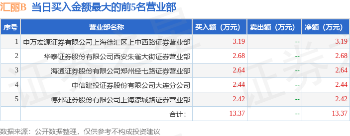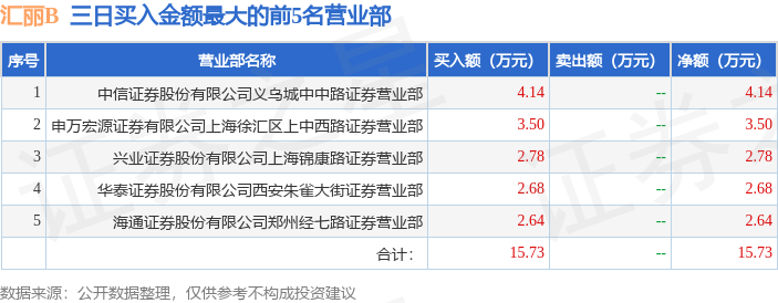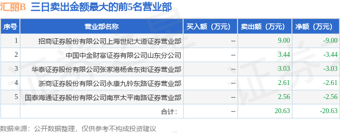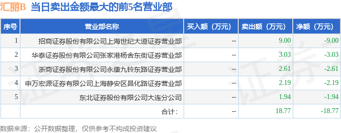 证券之星消息,沪深交易所2025年4月24日公布的交易公开信息显示,汇丽B(900939)因有价格涨跌幅限制的日收盘价格跌幅偏离值达到7%的前五只证券,非ST、*ST和S证券连续三个交易日内收盘价格跌幅偏离值累计达到20%的证券登上龙虎榜。此次是近5个交易日内第3次上榜。